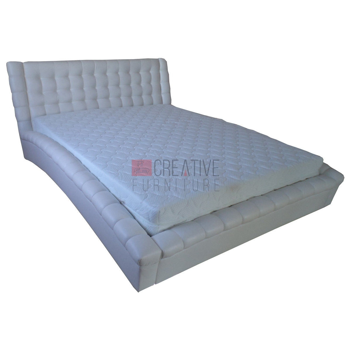 Pat tapitat piele ecologica maro/bej. Patul este cu lada si contine somiera rabatabila